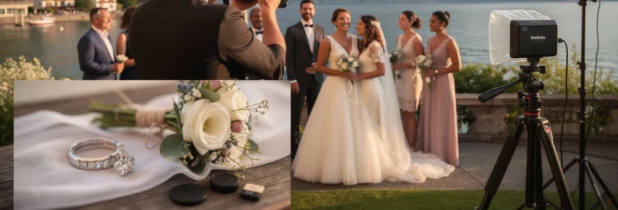 En Suisse, beaucoup de couples choisissent une cérémonie extérieure : sur une terrasse face aux Alpes, au bord d’un lac, dans un vignoble du Lavaux ou au milieu d’une clairière. Ces lieux splendides impliquent cependant de préparer sérieusement la protection du matériel. Les housses étanches, pare-soleil, filtres de protection et sangles robustes permettent au photographe de travailler sereinement, même si un orage soudain, un vent fort ou une fine bruine s’invitent à la fête. De la même manière qu’on prévoit un plan B pour la météo, le photographe anticipe un arsenal de solutions techniques pour sécuriser ses boîtiers et objectifs.